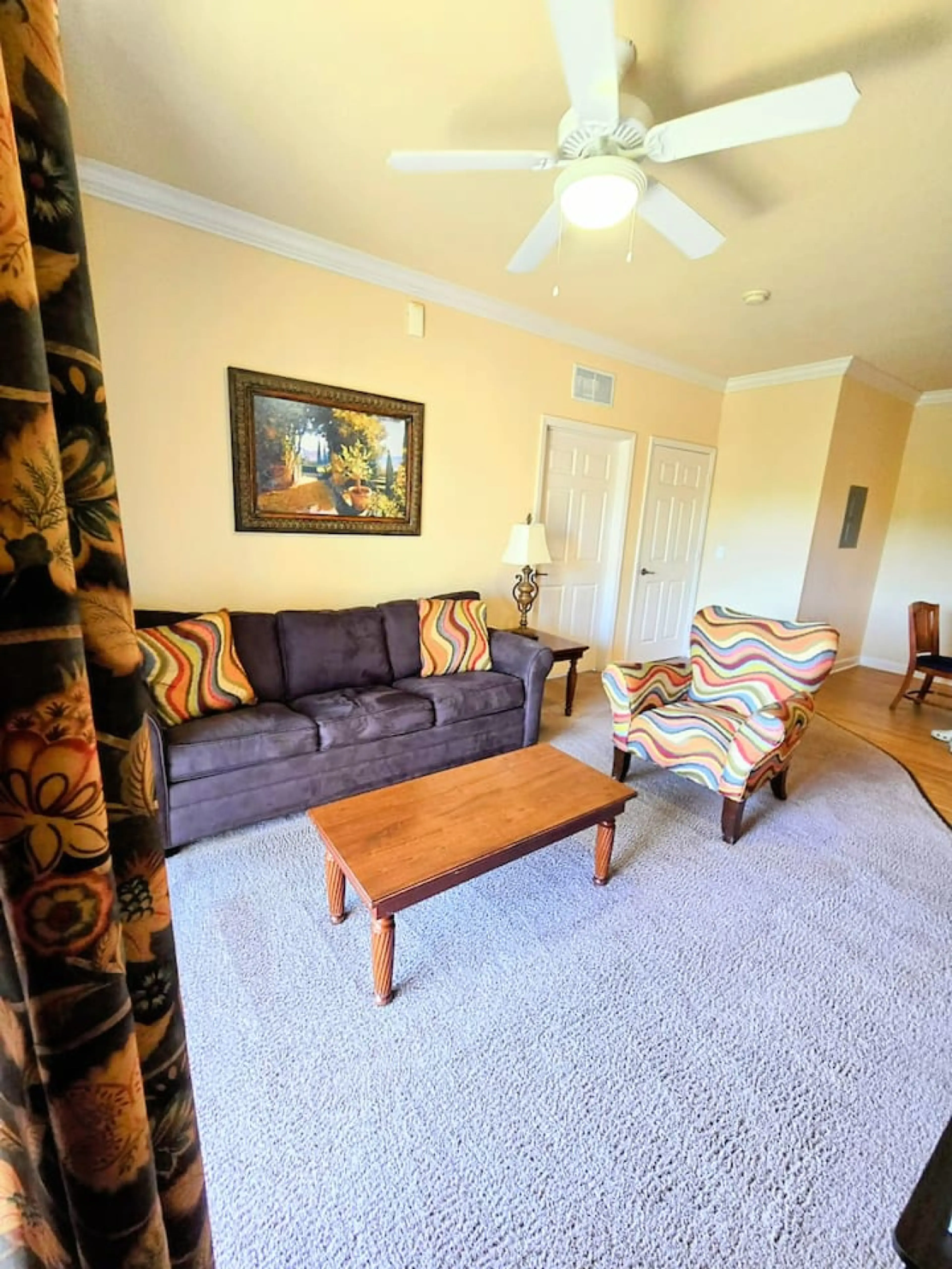 Peaceful and spacious this escape offers serenity mixed with resort living in the heart of Central Florida. Step onto the screened in balcony to enjoy the Florida weather. You will be on the top floor (4th floor) so there are no upstairs neighbors. The elevator and stairs are just a few meters awa...